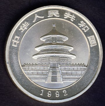 Kina, 10 yuan SØLV 1992 - 1 ounce FINSØLV - KM 397