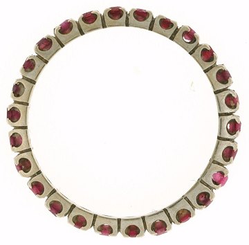 Ring af 14 kt. rhodineret guld prydet m. talrige facetslebne rubiner. Stemplet "585". Str. 55.