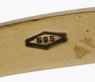 Ring af 14 kt. guld prydet m. en brillantsleben diamant på 0,25 ct. Stemplet "585". Str. 58.