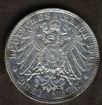 Hamburg, 3 mark SØLV 1914J - KM 296