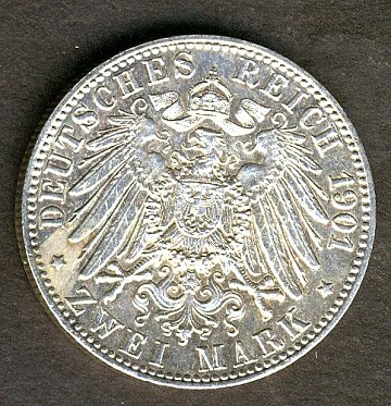 Preussen, Wilhelm II, 2 mark SØLV 1901A - KM 525