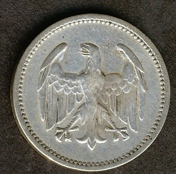 Tyskland, Weimar republikken, 1 mark SØLV 1924A - KM 42