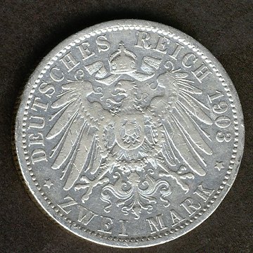 Preussen, Wilhelm II, 2 mark SØLV 1903A - KM 522