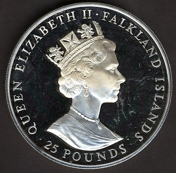 Falklandsøerne, 25 pounds STERLINGSØLV 1985 Proof - KM 20