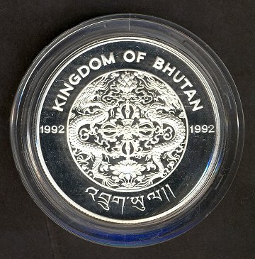 Bhutan, 300 ngultrums STERLINGSØLV 1992 Proof - KM 74
