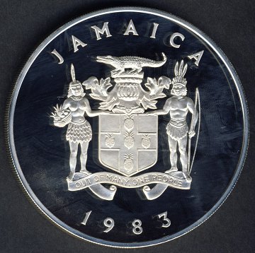 Jamaica, 25 dollars STERLINGSØLV 1983 Proof - KM 112