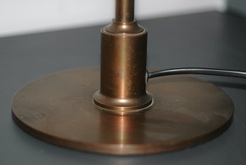 PH Poul Henningsen (1894-1967) - 3/2 bordlampe i bruneret messing, skærme af mundblæst hvidt opal glas, monteret med plastledning m. afbryder. H. 47,2 cm. Diam. 29 cm.