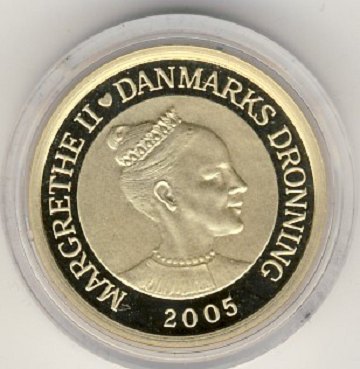 Denne 10 kr, præget på Den Kongelige Mønt, er udgivet i anledning af 200 året for H.C. Andersens fødsel d. 2. april 1805.