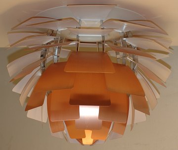 Poul Henningsen skabte i 1958 lampen til Langeliniepavilionen i København. Armaturet består af tolv gange seks blade, der dirigerer lyset på en sådan måde