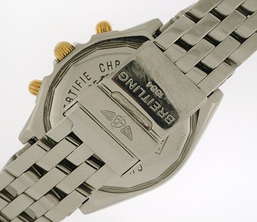Breitling Chronomat Automatisk herreur i stål/guld, uret er fra april 2002 safirglas, tachymetre, dato ved position 3", dia. 41 mm.