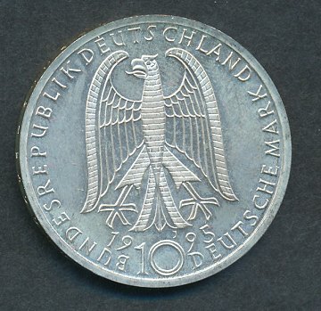 Tyskland, 10 mark SØLV 1995J - KM 185