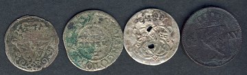 Samling norske skillingsmønter - Bl.a. 2 skilling 1691 H. 76