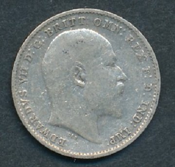 England, 3 pence STERLINGSØLV 1908 - KM 797.2