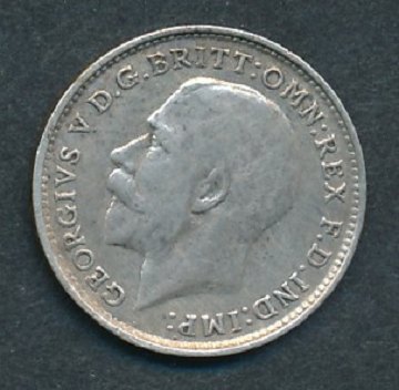England, 3 pence STERLINGSØLV 1919 - KM 813