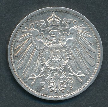 Tyskland, 1 mark SØLV 1914A - KM 14