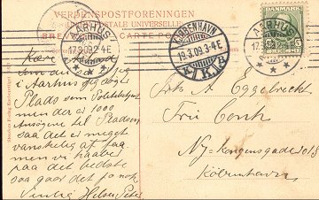 Sendt fra Aarhus til Kbh. 19/3.1909