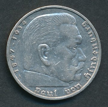 Tyskland, 5 mark SØLV 1938A - KM 94