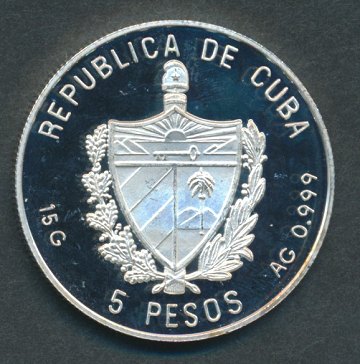 Cuba, 5 pesos FINSØLV 1993 - Proof - KM 524.3