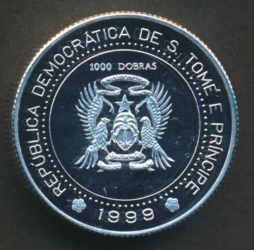 St. Thomas & Prince, 1000 dobras SØLV 1999 Proof - KM 99