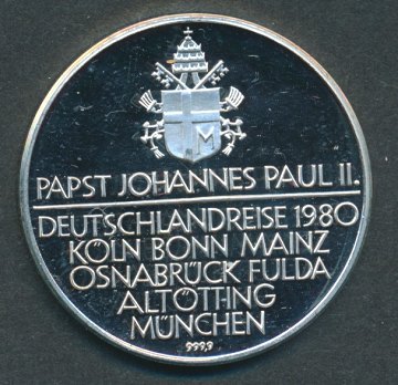 Præget i anledning af Paven Tysklandsrejse 1980, hvor han besøgte Köln, Bonn, Mainz, Osnabrück, Fulda, Altötting og München.