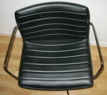 Catifa 46 stol, produceret af Arper, stolens design og form gør at anvendelsesmuligherne er utallige. Stel udført i forkromet metal og skallen betrukket med sort læder.