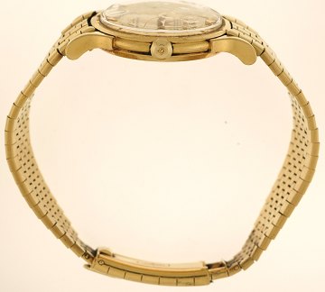 Automatisk herrearmbåndsur fra Omega, model "Constellation" m. kasse af 18 kt. guld samt originalt Omega-lænke, ligeledes af 18 kt. guld, guldskive m. stregindeks, plexiglas. Ø. u. krone: 35 mm.