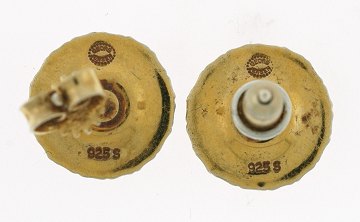 Populære ørestikkere fra Georg Jensen af forgyldt og emaljeret sterlingsølv. Ø. 11,5 mm.