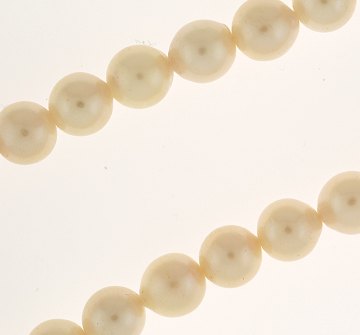 Perlekæde m. pæne kulturperler (ca. 6,5 mm. i diam.) fra Poul Ipsen, prydet m. delvist forgyldt kuglelås af sterlingsølv. Stemplet "PI 925". L. 43 cm.