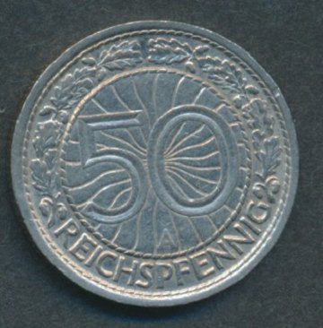 Tyskland, 50 pfennig 1928A - KM 49