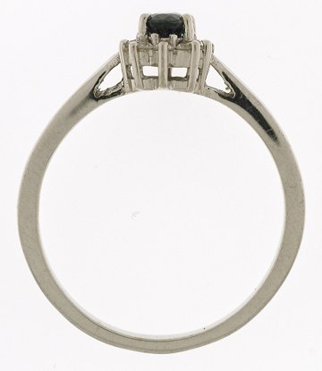 Ring af 14 kt. guld, prydet m. facetteret safir omkranset af 10 brillantslebne diamanter på ialt ca. 0,10 ct. TW/VS. Str. 54.