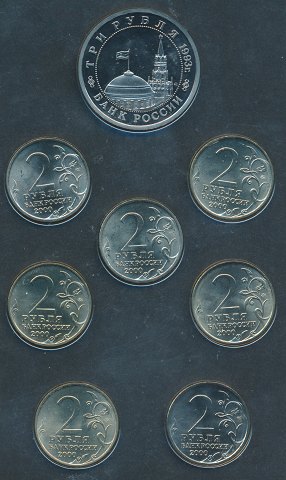 Rusland - Møntsæt m. 3 rubler 1994 samt 7 stk. 2 rubler 2000