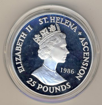 St. Helena & Ascension Island, 25 pounds FINSØLV 1986 Proof