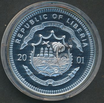 Liberia, 20 dollars FINSØLV 2001 Proof - History of Norway