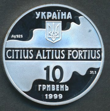 Ukraine, 10 hryven STERLINGSØLV 1999 Proof - KM 117