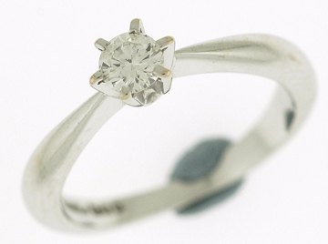 Solitairering af 14 kt. guld, prydet m. en brillantsleben diamant på ca. 0,20 ct. Stemplet "FEJ 585". Str. 50 1/2.