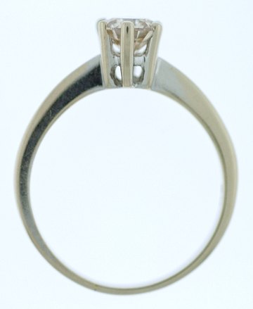 Solitairering af 18 kt. rhodineret guld, prydet m. en brillantsleben diamant på ca. 0,80 ct. Stenen fremstår champagnefarvet m. god brillans og en acceptabel klarhed. Stemplet "750". Str. 59.