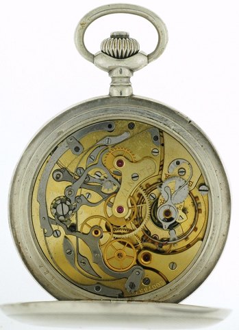 Herrelommeur af det hæderkronede fabrikat, Zenith, i kasse af sølv, hvid emaljeret skive m. arabertal, stopursfunktion, separat sekund- og minutviser, indvendig stemplet "Zenith 0,800". Ø. ca. 51,5 mm.
