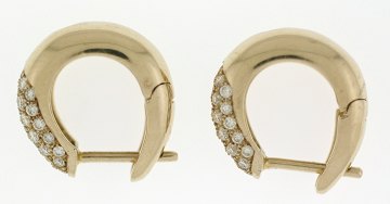 Ørestikker af guld, prydet m. talrige brillantslebne diamanter på ialt ca. 0,28 ct. Utydeligt stemplet, men formodes at være 14 kt.