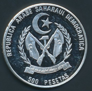 Den vestsaharanske Arabiske D.R., 500 pesetas FINSØLV 1992 - KM 9.1