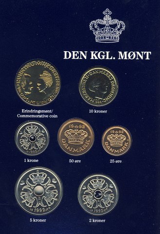Møntsættet indeholder samtlige mønter i Danmarks møntserie præget i særlig høj kvalitet: 20-, 10-, 5-, 2-, og 1-kr samt 50- og 25-øre.