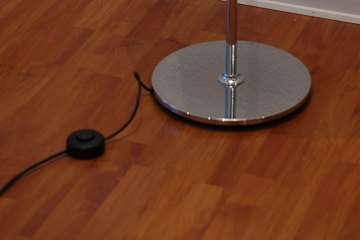 Standerlampen fremstår i pæn stand m. nyt skærmsæt, hvor kasse medfølger til overskærmen.