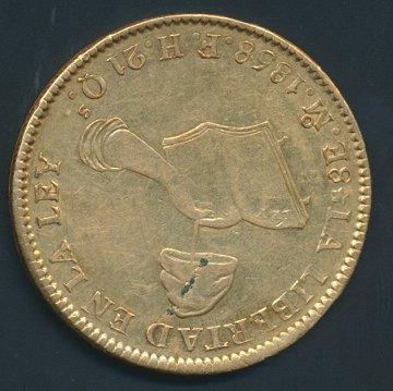Mexico, Mexico City, 8 escudos GULD 1858 MO, bs. F.H. - KM 383.9