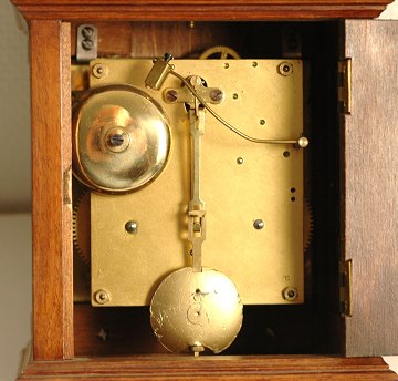 James Smith of London lygteur i kasse af fineret træ. Ornamenteret skive bag glas med romertal og minutinddeling. Værk med ½ time slag på klokke. H. med messinghåndtag 26,5 cm. England ca. 1970.
