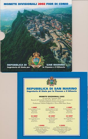 Euromøntsæt fra San Marino bestående af: 1, 2, 5, 10, 20 og 50 cent samt 1 og 2 euro.