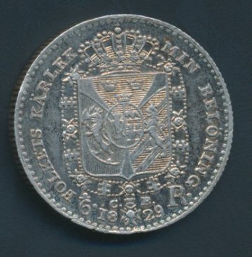 Carl XIV Johan, 1/6 rigsdaler 1829 CB - SM 58
