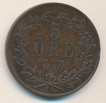 Carl XV, 5 øre 1860 - SM 51 "Præget på 1857"