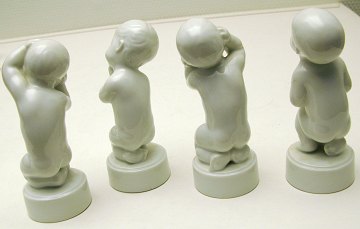 B&G figur nr. 2206, 2207, 2208 og 2209 i blanche de chine, henholdsvis hovedpinen, tandpinen, mavepinen og ørepinen. Alle H. ca. 11,5 cm. Alle i 1. sortering.
