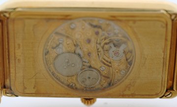Lænken mm. er fremstillet af 18 karat guld. Med transparent bagside hvor man kan se det mekaniske urværk,