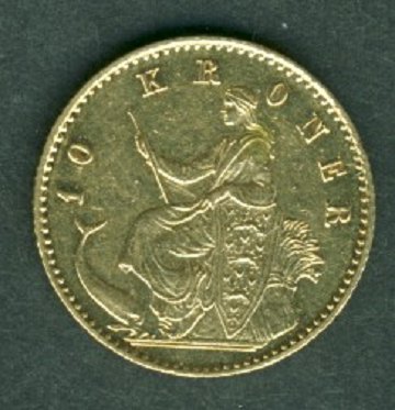 Christian IX, 10 kr GULD 1873 CS - H. 9 A & KM 790.1