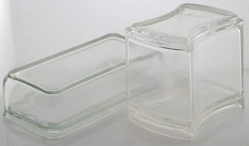 To styk gemmer af formstøbt glas, ca. 1930-40. H. 11 cm. på den ene og L. 18 cm. på den anden.